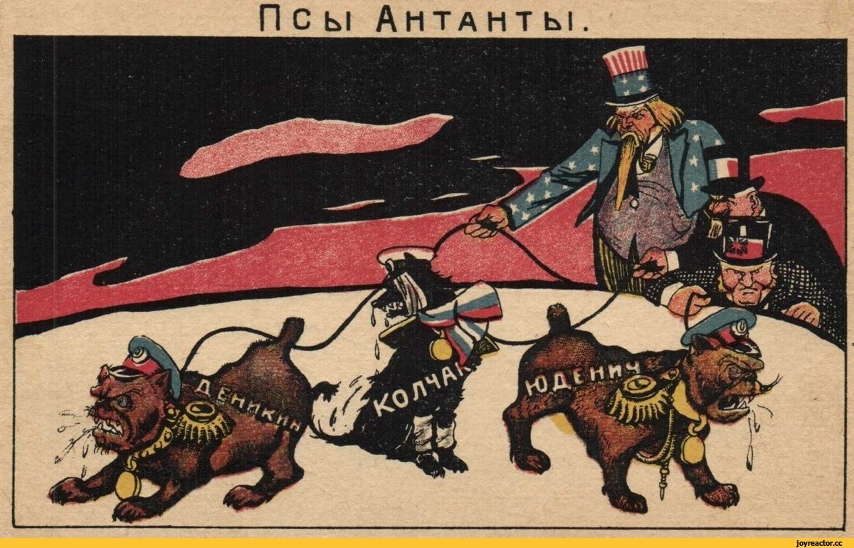 1. Плакат красных времён гражданской войны в СССР: «Псы Антанты».