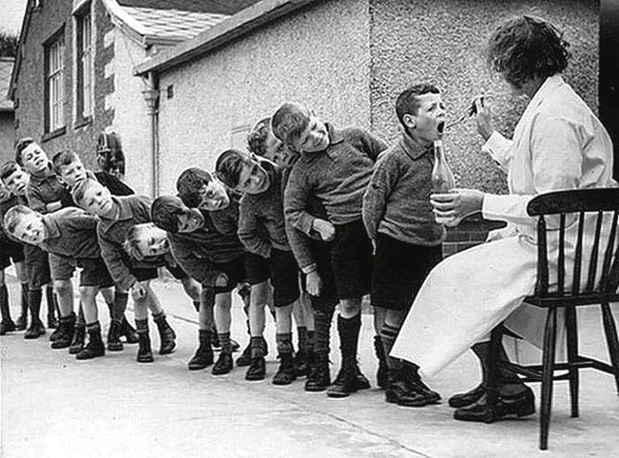 4.Раздача рыбьего жира в советском детском саду (по системе Н. Семашко).