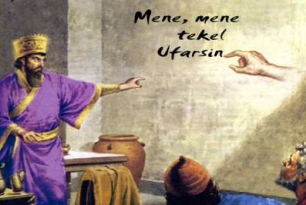 Она точно и ярко выражена в словах “мене, мене, текел, упарсин” (по-арамейски они значат: “исчислен, исчислен, взвешен и найден очень легким!”).