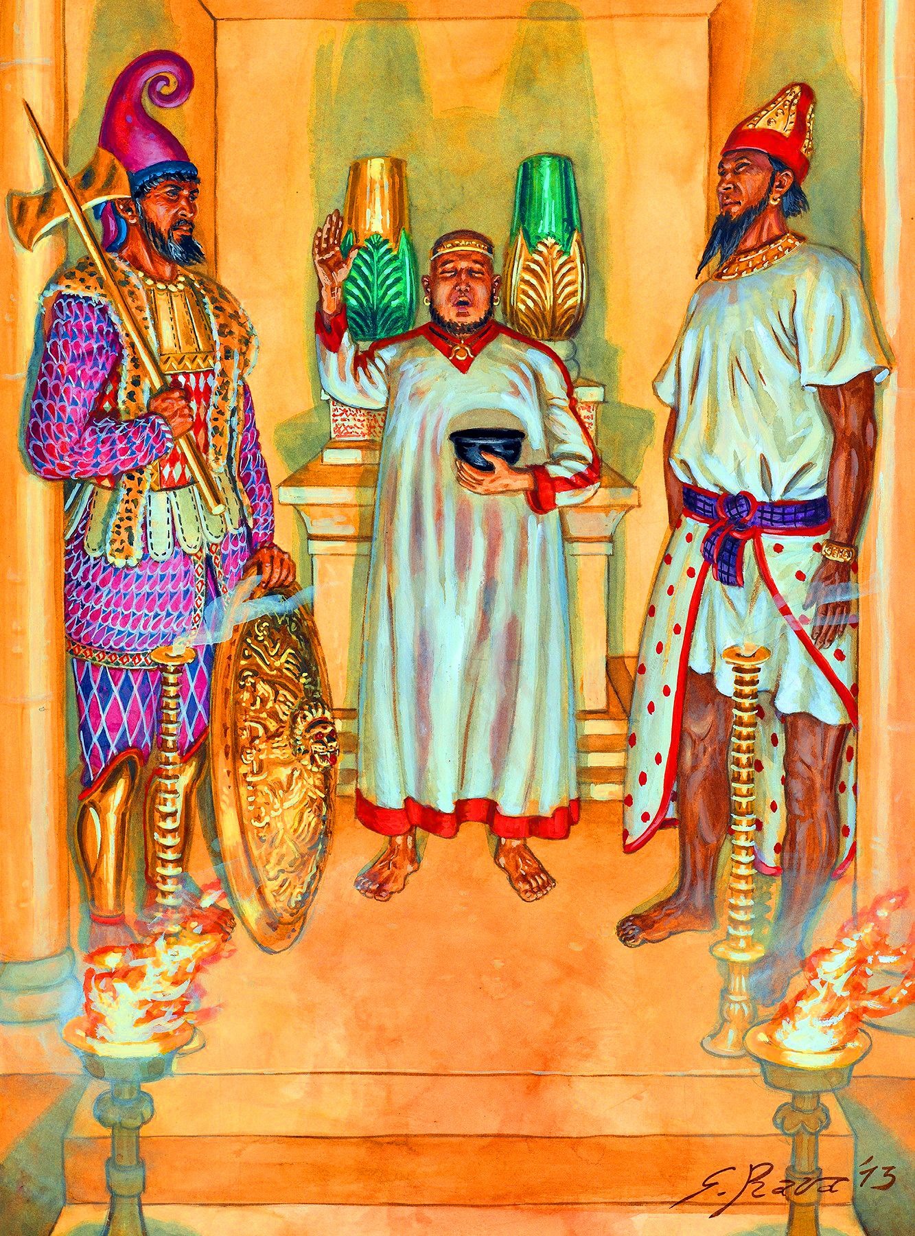 Гамилькар Магон готовится к огненному погребению. Перед ним стоят морской пехотинец с Сардинии и карфагенский гоплит