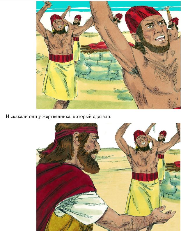 Как видим, Ваал малой ритуальной кровью своих жрецов не удовлетворился, и на помощь не пришел. А может действительно спал, или просто решил не высовываться, на всякий случай, чтобы по рогам не схлопотать.