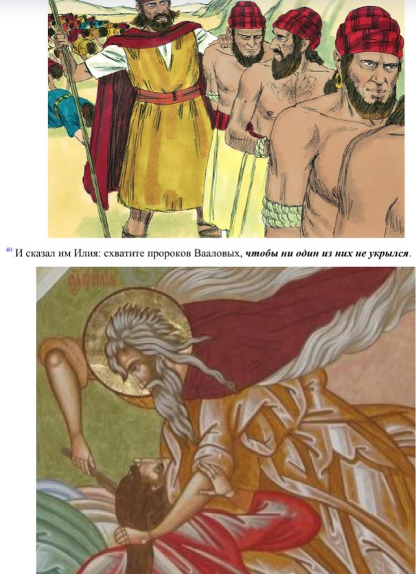 И схватили их, и отвел их Илия к потоку Киссону, и заколол их там. [3 Царств 18:18-40].
