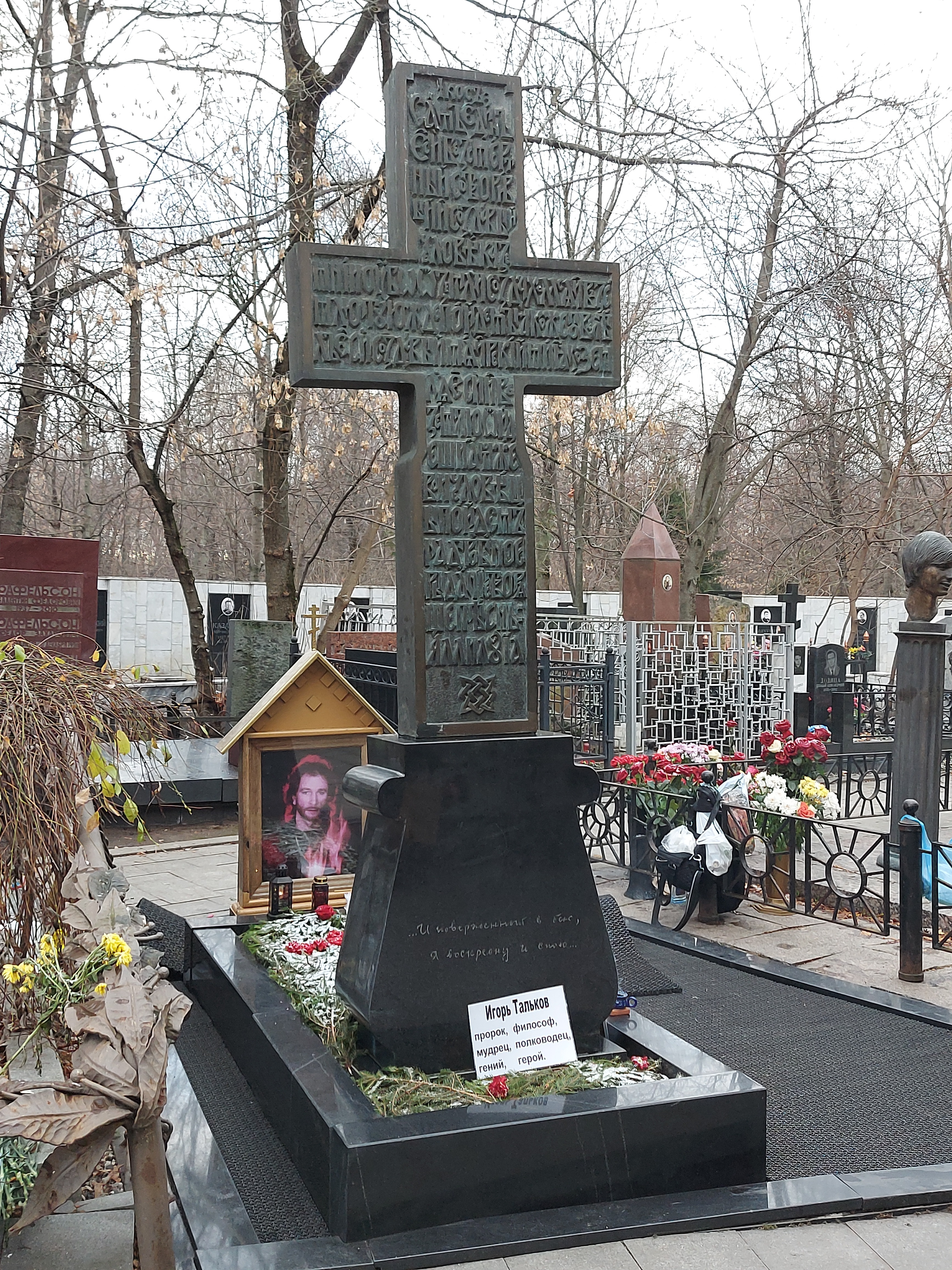 На могиле Игоря Талькова (в этом году ему исполнилось бы 65 лет) часто воскуряют фимиам. На его памятнике выбиты следующие слова: «Пророк, философ, мудрец, полководец, герой». Поразил памятник в виде скульптурного изображения грузной женщины в лежачем положении (в советское время она была зам. руководителя Комитета по Телевидению и Радиовещанию). Памятник обошёлся в 8 миллионов рублей. Вообще, если оценить объём мрамора и железа на памятниках и оградах, и работу за их устроение, наверное, счёт пошёл бы на миллиарды. На мой взгляд, нет ничего лучше восьмиконечных белых крестов на могилах усопших. Помолились на могилах блаженных Николая (+1913) и Митрофана (конец XVIII – начало XIX вв.)