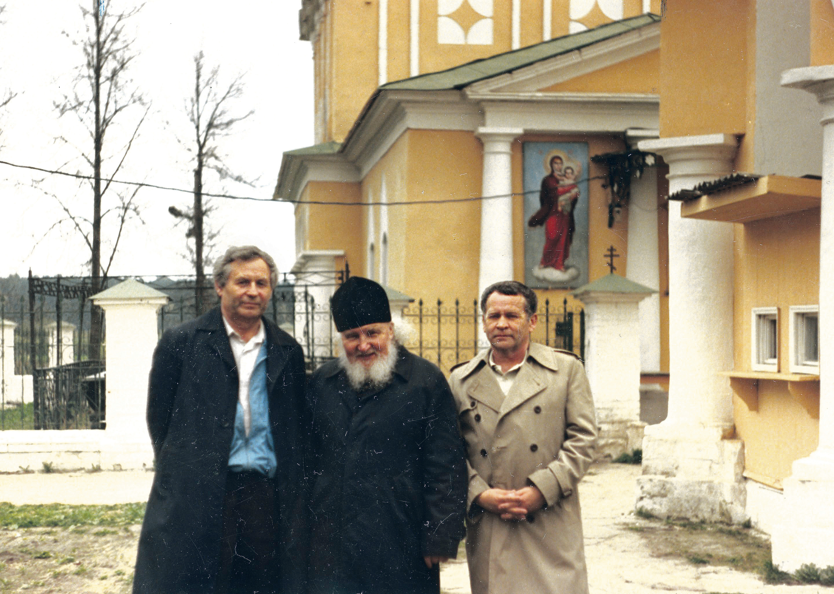 Пески. Московская область, апрель 1989 г. Слева направо: Михаил Лобанов, о. Димитрий Дудко, Николай Тетенов (редактор журнала "Русское самосознание" Джорданвиль, США)