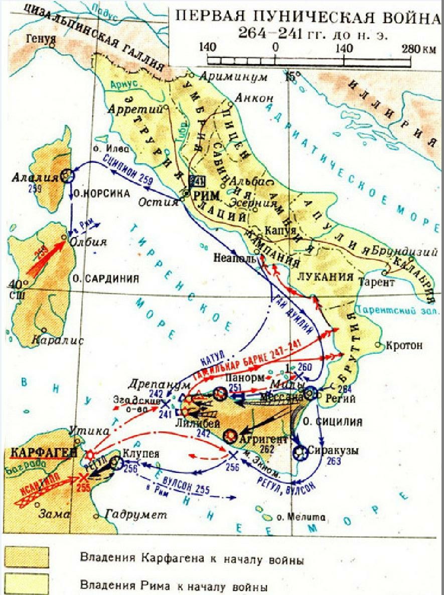 [2] Хлевов А.А. Морские войны Рима. – СПб., 2005. С. 53-54. Любознательным очень рекомендую прочесть всю книгу, основанную на первоисточниках, таких как Полибий и другие античные авторы. Дальнейшее описание морских действий в Пунических войнах во многом опирается на рассказанное в ней без дополнительных ссылок. Сам Хлевов опирается в изложении фактов в первую очередь на Полибия. С небольшими сокращениями текст Полибия, относящийся к Первой Пунической из его «Всеобщей истории, приведен, например, в приложении к книге Гейвин де Бир. Ганнибал: борьба за власть в Средиземноморье. - Смоленск: Русич, 2005. С. 279-324. Есть в инете. Там же есть и сама «Всеобщая история».