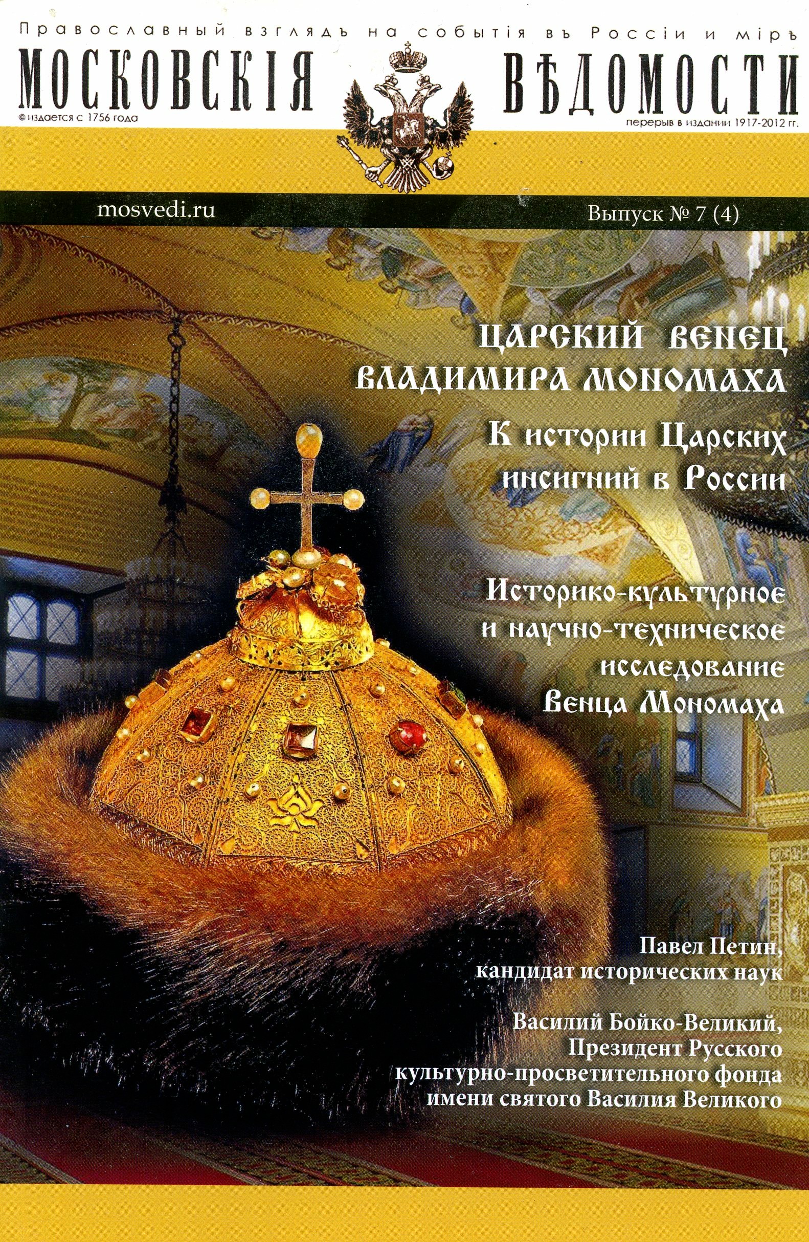 В связи с этим напоследок стоит сказать, что осенью 2016 года вышла в свет книжка Василия Вадимовича Бойко-Великого и Павла Геннадиевича Петина «Царский Венец Мономаха. К истории Царских инсигний в России. Историко-культурное и научно-техническое исследование Венца Мономаха» (М.: Русский издательский центр, 2016. 50 с.), к научной редактуре которой имел честь быть причастным и я. Однако спустя некоторое время Василий Вадимович решил продолжить исследование природы Царских Венцов и Корон, он предложил и мне принять в нем деятельное участие. Издание, запланированное на 2019 год, не состоялось по известным причинам юридического преследования В.В.Бойко-Великого по надуманным обвинениям, из-за которых с Июня 2019-го и по Май 2021 года Василий Вадимович безвинно провел в тюремном заключении.
