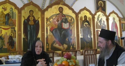 - Матушка, можно Вас теперь поздравить с Вашим юбилеем. Мы хотели приехать 14-го, на самый праздник, но тогда в Пюхтицах спросили у Вас, и Вы мудро сказали: приезжайте через недельку – другую после юбилея. Мы послушались вас, и вот теперь имеем счастливую возможность быть с Вами и беседовать за одним столом. Мы понимаем, какое это значимое святое место, и нам особенно приятно, что здесь послушание несете вы, петербурженка. У Петербурга и Эйн-Карема через Вас есть теперь духовная связь. Поэтому мы Вам, матушка Георгия, желаем многая и благая лета на этой Земле. Я знаю, что вы, матушка Георгия, ее возлюбили всем сердцем и ни на что не желаете променять ее, только – на Царствие Небесное.