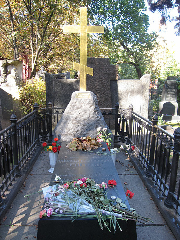 Могила Гоголя на Новодевичьем кладбище (с крестом, установленным в 2009 г.) Современная фотография