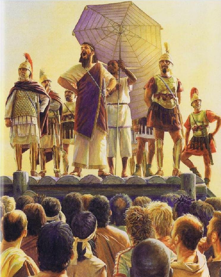 Он то порицал их за прошлое, то старался разъяснить им настоящее, но больше всего обращал их внимание на будущее и убеждал относиться благожелательно к тем, которые издавна платили им жалованье за службу. В заключение он приступил к разрешению спора о недоданном им жалованье, причем производил и уплату по племенам».