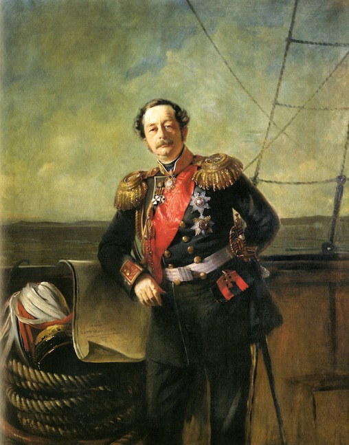 [4] Гошкевич (Гашкевич), Иосиф (Осип) Антонович – чиновник Азиатского департамента Министерства иностранных дел. Сын деревенского священника из Малороссии, выпускник Минской семинарии и Петербургской духовной академии, провел 10 лет в Пекине в составе Русской духовной миссии. Соплаватель И.А. Гончарова. Прикомандирован к миссии Путятина в качестве драгомана (переводчика). Первый русский консул в Японии. Составил словарь японского языка, живо интересовался естественными науками, собрал большие коллекции, хранящиеся главным образом в Зоологическом музее Академии Наук. Инициатор создания Русской Православной миссии в Японии. По видимости, вполне достойный человек, только вот переговоры по Цусиме вел крайне неумело. Чтобы не сказать больше.