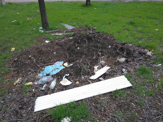 Здесь воронки от мин. Не самые страшные – «всего-то» от восьмидесятидвухмиллиметровых. От «сто двадцать вторых» – глубже и страшнее. В воронки сваливают мусор. Удобно.
