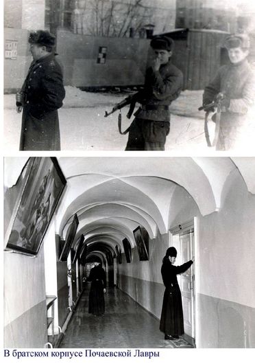 В Почаевской Лавре за время своего пребывания с октября 1979 года до июня 1980 года я прошел несколько послушаний: трапезника, пономаря, помощника ризничего, помощника келаря, был даже келейником у наместника. В Лавре тогда было около 40 насельников. Первое искушение: как только я стал помощником ризничего, то вызвал подозрение тем, что пристально рассматривал в ризнице монастыря святыни – мне как историку было интересно. Но накануне, оказывается, была кража. Меня сняли с этого послушания. Келейником тоже был недолго. Наместнику не понравился мой вопрос, когда после визита кого-то из местного начальства я его спросил: «Они сами к вам пришли или вы их пригласили?» Вообще сотрудники «органов» вели себя безцеремонно: «отец наместник, у Вас в таких-то и таких-то кельях живут не прописанные люди». Э…э…э… «Ну что ж, делайте выводы». Приходилось откупаться.