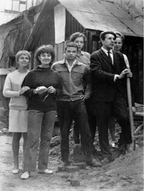 Члены клуба «Родина» на воскреснике по восстановлению дома В.И. Даля (осень 1969 года). Слева направо: Т. Морозова, Г. Ковалева, Н. Глущенко, В. Янгичер, А. Попов, Т. Чуринова
