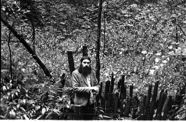 Пономарь Николай Затёкин возле частокола шегень на Ганиной яме. 1987 год