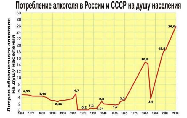 График потребления алкоголя в Российской Империи, СССР и Российской Федерации