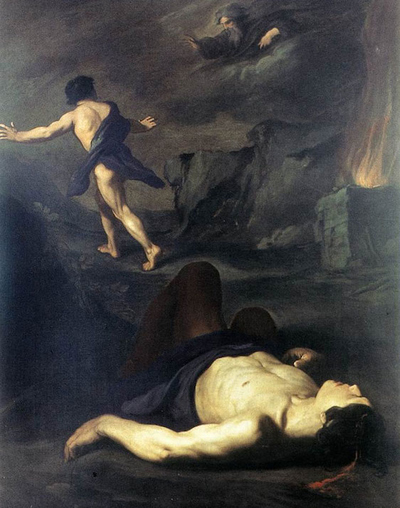 Надо признать, что и Михаил Лифшиц и Максимилиан Волошин не оригинальны, они идет вслед за Святоотеческим Преданием, в частности, Блаженный Августин уже подобное утверждал в своей знаменитой «Исповеди». Но поэт своеобразно интерпретирует евангельские тексты: «Каин первый / нашёл пристойный жест для выраженья / Родственного чувства, предвосхитив / Слова иных времен: / «Враги нам близкие, / И тот. Кто не оставит / Отца и мать, - тот не пойдет за мной». Явная реминисценция с Евангелием от Матфея (10: 35-36). Однако это разные эпохи и потому разные одними и теми же словами могут ставиться задачи. Волошинский Каин – не воплощенное зло. Он дарил Богу: «Плоды и колос вспаханного поля», Который требует «испарений крови». Наивность рассуждений художника в данном тексте очевидна. Каин убивает брата из зависти. Это детство человека, а в детстве из зависти, что не дали игрушкой поиграться, иной ребенок другого в песочнице закопает. Но Волошин поэт, и он сочувствует музыканту и первому поэту: «Создатель музыки - /Прислушиваясь к ветру, / Он вырезал свирель / И натянул струну». Это сочувствие Каину присуще романтической традиции, от которой художник себя не отделял (достаточно вспомнить Байрона). Каин потому первооткрыватель искусства, что «понял / Хмель одиночества / И горький дух свободы». В этой антиномии, по Волошину, суть человеческого естества, его трагедия. Ведь познание, согласно премудрости Екклесиаста, умножает скорбь. Рождается парадокс: «Так стал он предком всех убийц, / Преступников, пророков – зачинатель / Ремесл, искусств, наук и ересей». Но этот парадокс для Волошина оправдан. Такова диалектика движения: «В кулачном праве выросли законы / Прекрасные и кроткие в сравненье / С законом пороха / И правом пулемёта». Можно согласиться с Э. Менделевичем, что «нарастание исторической парадоксальности – вот путь, по которому шествует трагедия материальной культуры». И эта трагедия приводит к тому, что поэт наблюдал воочию: «Когда из пламени народных мятежей / Вливается кровавый стяг с девизом: / - «Свобода, братство, равенство иль смерть!» - / Его древко зажато в кулаке / Твоём, первоубийца Каин!» Волошин принимает такой ход истории, как когда-то принимал как неизбежность и Божий бич, гуннские орды, святой Лу Труасский.