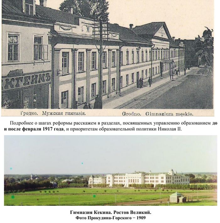 Это могло быть осуществлено только при снижении «бюрократической зависимости» средней школы. Именно на снижение этой зависимости и были направлены реформы отечественного образования Государем Николаем II.