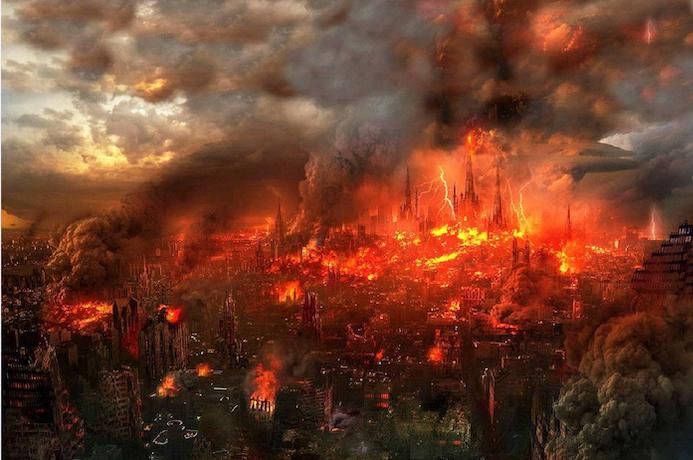 И восплачут и возрыдают о ней цари земные, блудодействовавшие и роскошествовавшие с нею, когда увидят дым от пожара ее, стоя издали от страха мучений ее и говоря: горе, горе тебе, великий город Вавилон, город крепкий! ибо в один час пришел суд твой.