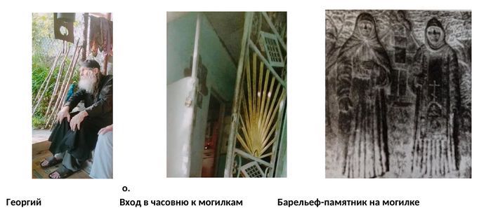 И вот мы проезжаем место, где когда-то находилось село Чины. Едем по заросшим грунтовым дорогам к месту другого разрушенного греческого села — Георгиевки и где-то посредине между ними останавливаемся на краю обрыва у деревянного заборчика из тонких жердочек. Вместо калитки — веревочка, а рядом — несколько ореховых палок для паломников. Мы берем эти посохи и начинаем спускаться по тропе, идущей по крутому склону в глубину ущелья реки Джампал, где на крутом склоне находится маленькая келья-часовня с могилками кавказских подвижниц схимонахини Елены и ее сестры, монахини Нины. Тяжелее всех приходится Олегу Ивановичу, которому пошел уже девятый десяток. Обливаясь потом, он с большим трудом спускается по узкой тропинке горной кручи. Отец Паисий отправился первым, и вскоре где-то внизу послышался колокольный звон, так не привычно звучавший в этой горной пустыне. Но вот, наконец, после изматывающих часов тяжелой дороги и затянувшегося спуска, мы добрались к желанному месту, пришли к могилкам тех, «которых весь мир не был достоин», тех, которые «скитались по пустыням и горам, по пещерам и ущельям земли».
