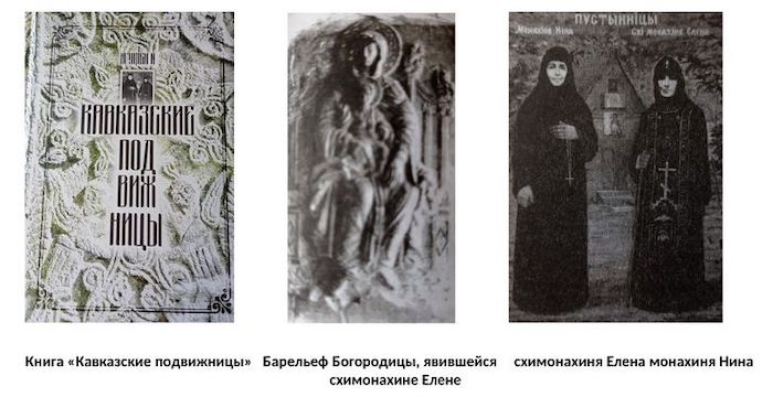 «Сама жизнь схимонахини Елены и сестры её, монахини Нины, составленная по воспоминаниям людей, близко знавших сестер, является чудом живой веры. Свечой Божией, зажженной в юго-западных пределах бывшей империи Самой Царицей Небесной, была приснопоминаемая схимонахиня Елена, которая множество людей не только в Кавказском регионе, но и тех, кто приезжал к ней из других областей нашей Родины, возвращала к вере отцов, направляя на путь спасения». Книга написана на основе воспоминаний духовного сына матушки Елены, схиархимандрита Саввы, известного и почитаемого всей Грузией и Грецией, подтверждается изобильными дарами Святого Духа, которые получил сей старец от Бога по молитвам его духовной матери. Редко можно встретить великих подвижников — духовных сыновей монахинь. Это тоже заставляет нас, ныне живущих мужчин, задуматься и вспомнить о том, что Дух дышит, где хочет и что нам нужно внимательно относиться к советам духовных подвижниц. Сама жизнь слова и советы матушки Елены, в передаче отца Саввы, обладают своей собственной глубокой внутренней достоверностью, ни в чем, не входя в противоречие с жизнью, поступками и словами православных святых отцов и учителей Церкви. «Кавказские подвижницы» (История жизни схимонахини Елены и сестры ее монахини Нины) с первой до последней страницы наполнена дыханием и действием Божьего Промысла. История рода схимонахини Елены (Тувишевой) своими корнями уходит в глубину двух последних столетий. Дед будущих монахинь по отцовской линии, Стилиан, был киприотом. Все четверо внуков деда Стилиана, оставив все мирские привязанности, безраздельно посвятили свою жизнь Христу. Младшая внучка родилась в 1887 году, а затем в возрасте 5 лет, исцелившись в Псковском монастыре от смертельной болезни, так и осталась в нем жить. Впоследствии эта девочка, будущая схимонахиня Елена, около 28 лет своей жизни провела монастырях в ревностном служении Богу. В 1924 году по благословению Святейшего Патриарха Тихона, у которого она после закрытия из монастыря находилась на послушании, вследствие тяжелой болезни была пострижена в великую схиму в Донском монастыре. Однако с Божией помощью она выжила, несмотря на сложную, по тем временам, операцию по удаление почки. Врачи рекомендовали ей сменить климат и уехать в горы, в Абхазию. Святейший Патриарх Тихон благословил ее брата архимандрита Никанора, которого хорошо знал, на поездку в Абхазию чтобы подобрать место для будущего скита. Прощаясь с отъезжающим на Кавказ братом, мать Елена открыла отцу Никанору тайну о явлении ей Пресвятой Богородицы, указавшей ей в сонном видении после операции, где следует искать место для пустыньки.