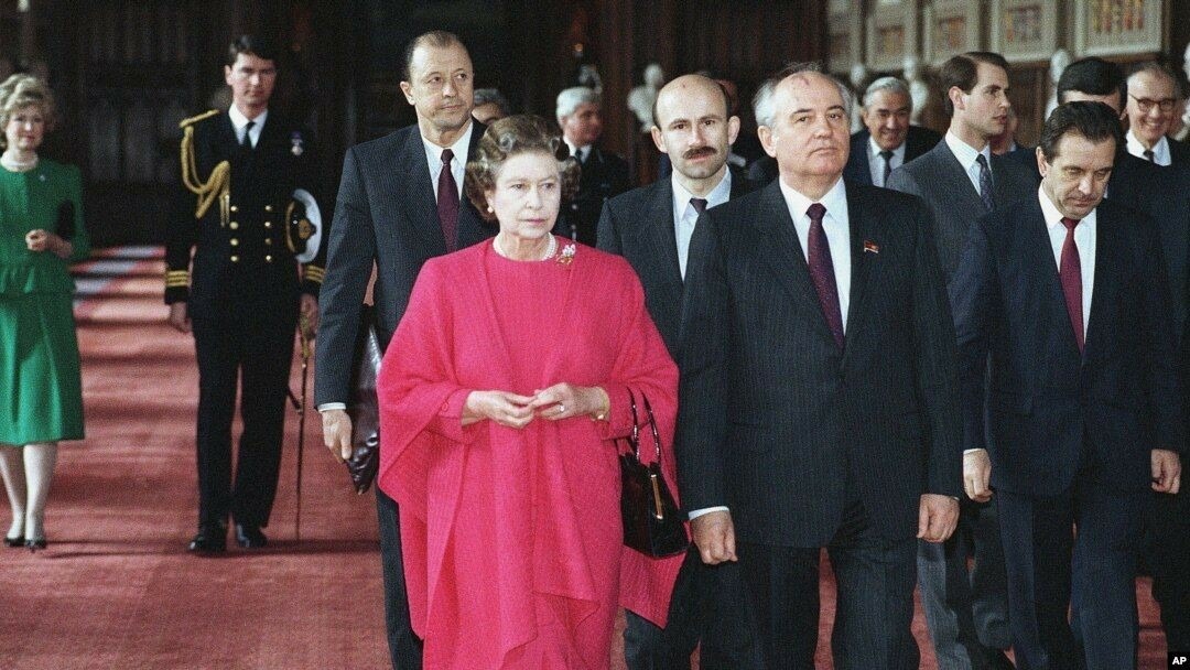 Английская королева Елизавета II и Генеральный секретарь ЦК КПСС Михаил Горбачев. Лондон, апрель 1989 года