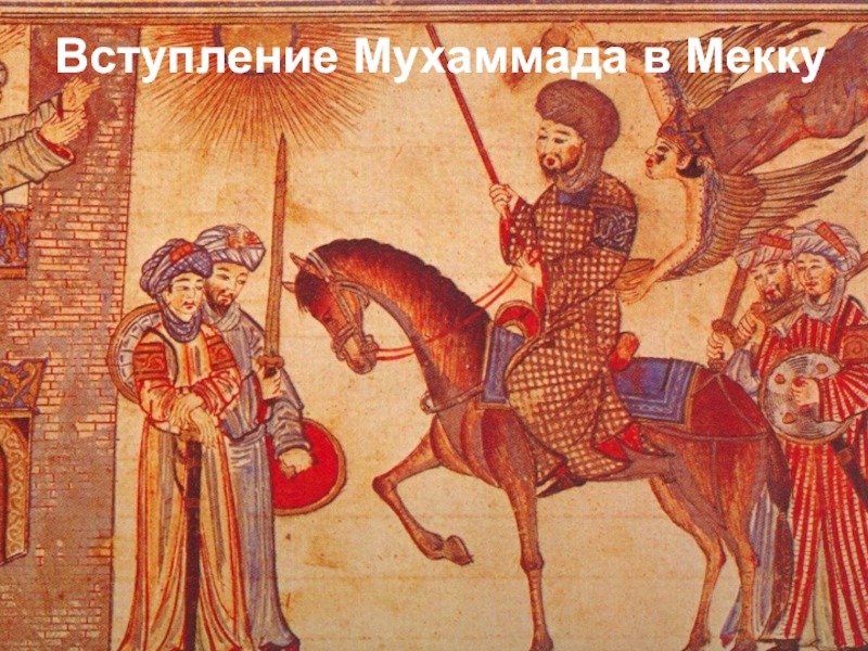 В 630 году Мухаммад принял решение двигаться на Мекку. Его десятитысячная армия застала мекканцев врасплох. Мухаммед торжественно вступил в Мекку.