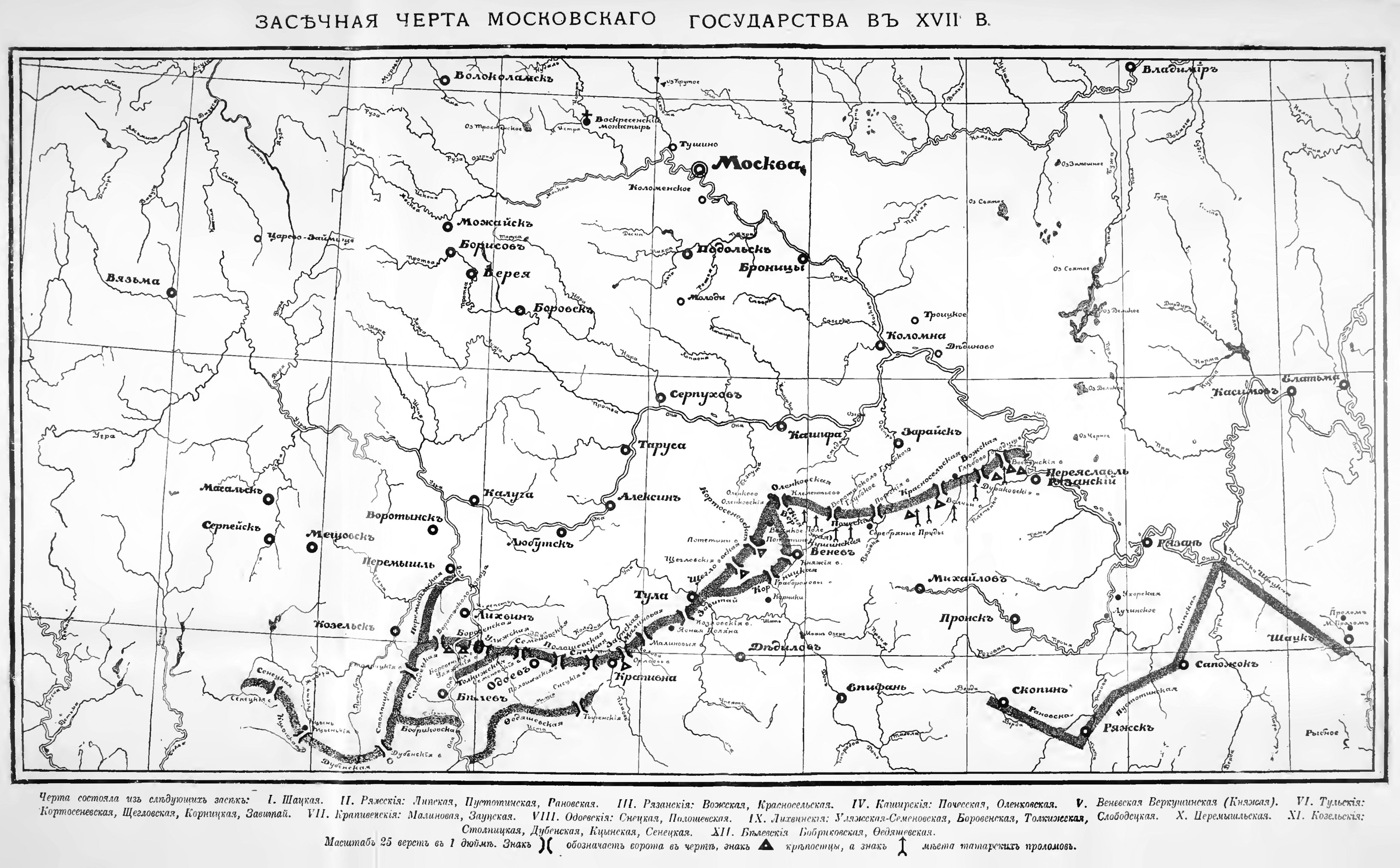 Южная граница Московии с 1554 года определялась строящейся и движущейся «засечной чертой», начинающейся уже в ста верстах к югу от Москвы. Свою актуальность эта черта сохраняла более ста лет.