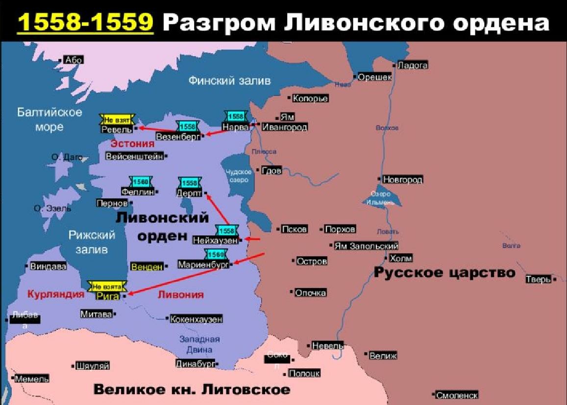Для понимания царских слов стоит напомнить, что Ливонская война началась в 1558 году, ввиду нарушения Ливонским орденом предыдущего договора с Россией. В январе этого года русские войска под командованием бывшего казанского хана Шах-Али и Михаила и Даниила Глинских провели в Ливонии «разведку боем». В мае 1558 года была взята Нарва.