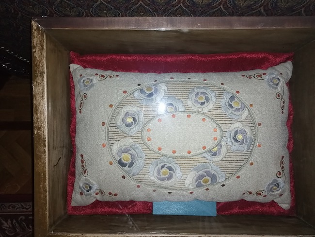 Написав письмо-обращение настоятелю собора иерею Герману Александровичу Ранне с просьбой прислать фотографию Царской подушки, я получила очень быстрый ответ и несколько фотографий подушечки.