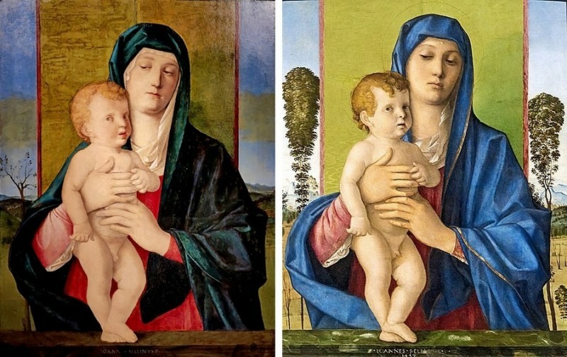 Джованни Беллини (1430/1433-1516). Мадонна с младенцем. Около 1486 (?). Дерево, масло. – Справа: Джованни Беллини. Мадонна дельи Альберетти. 1487. Галерея Академии, Венеция