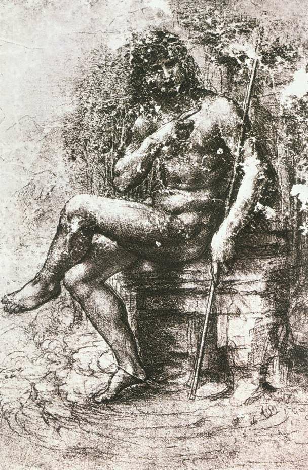 Леонардо да Винчи. Святой Иоанн в пустыне (набросок). Рисунки и иллюстрации, 1510 г.