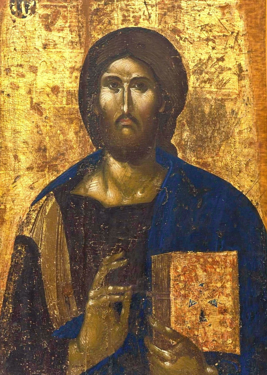 Лик Спасителя. Фрагмент иконы «Христос Пантократор». Византия, 1370 - 1380-е годы. Византийский Церковный музей в Митилини, Греция.
