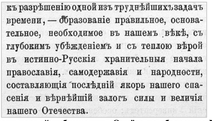 Становление такого образа, воспитывающего взрослого — педагога-наставника, воплощённого в русской исторической действительности, взращённого укладом народной жизни, испытанного национальным опытом, — есть важнейшая задача Российской державы и отечественного образования.