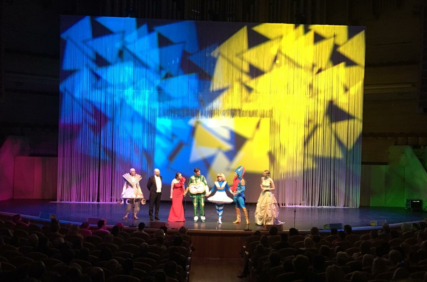 Пример первый. Совсем недавно, 24 апреля сего года довелось присутствовать на «культурном мероприятии» под названием «Посвящается Чайковскому». Большой концерт в московском Доме музыки. Сам концерт был неплох, даже хорош – с солистами Большого театра, но с завершающим «кадром» его стоит читателя ознакомить. Когда артисты выстроились на сцене для прощания со зрителями, за их спиной на большом экране появилось «сердце» в «жовто-блакитной» расцветке. Смотрите сами: