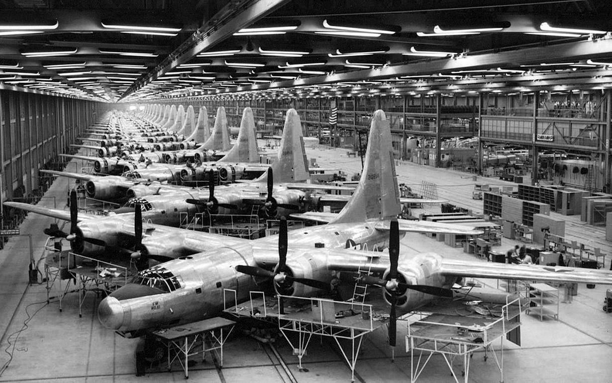 Бомбардировщики B32 на заводе в ФортУорте (Техас), предназначенные для доставки ядерного оружия