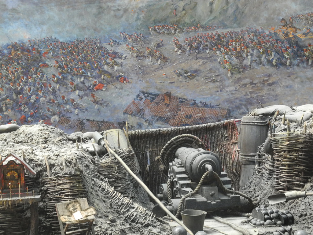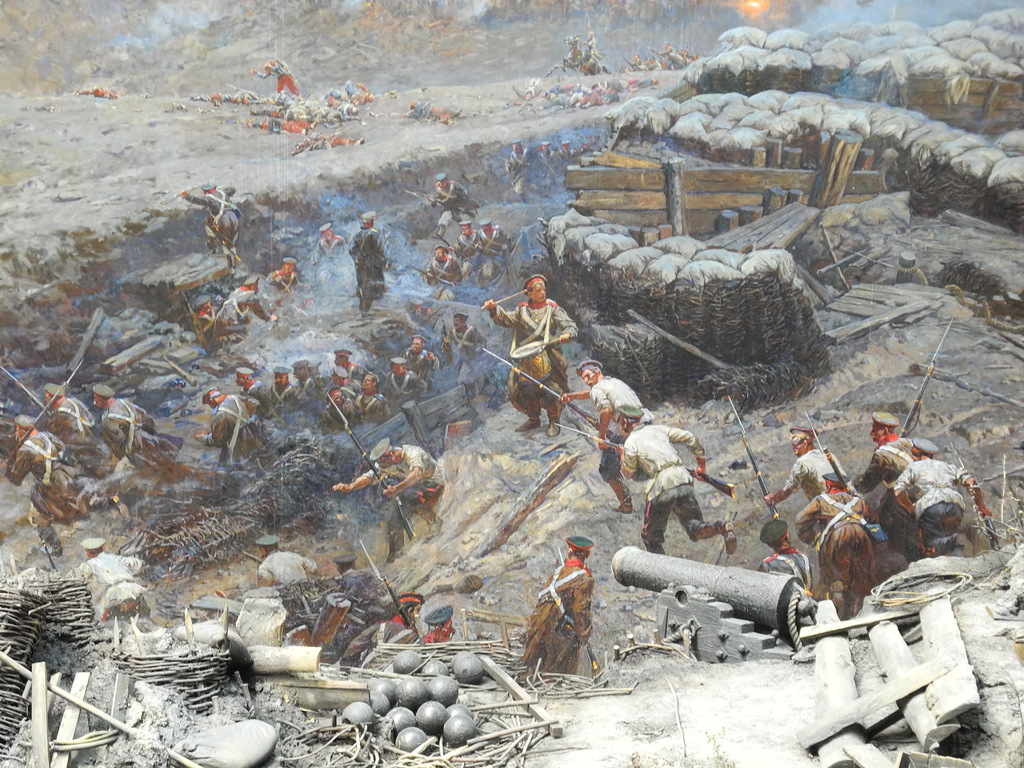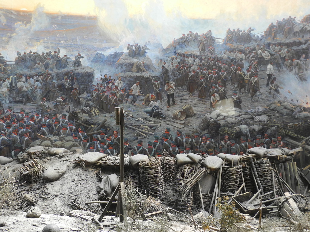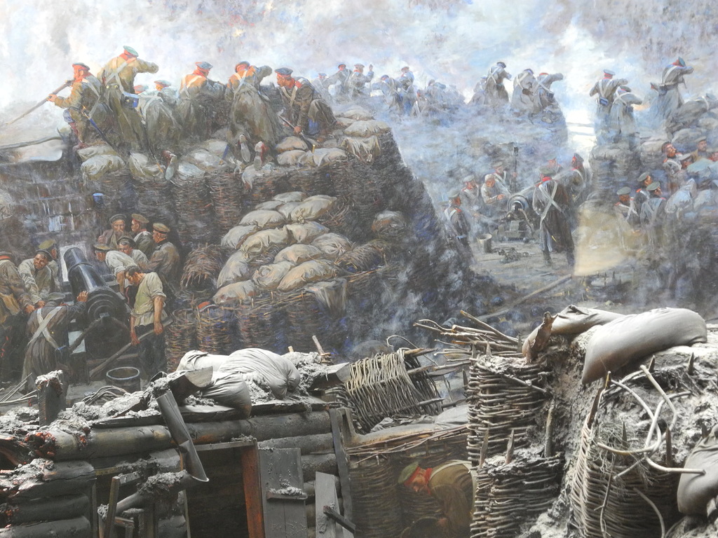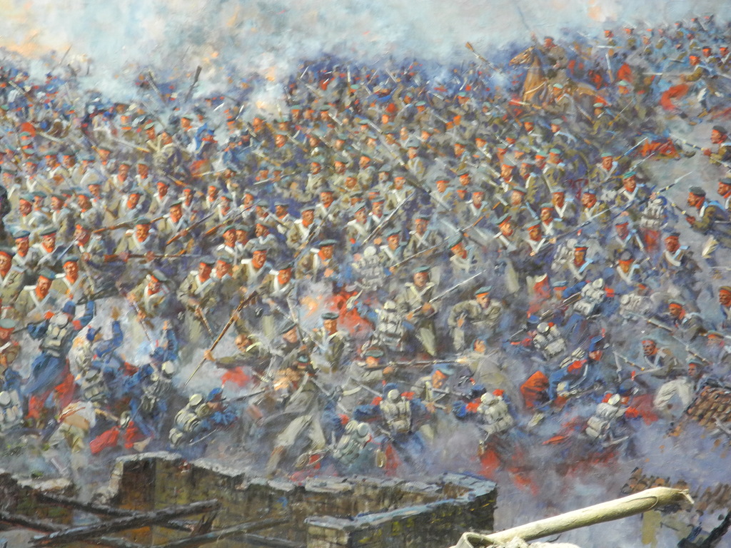 На следующий день я посетил панораму «Оборона Севастополя». Здесь я как бы присутствовал на одном из самых ожесточенных сражений Крымской войны, которое произошло 6/18 июня 1855 года и во время которого особенно сильно проявилась слава русского оружия. Фотографии, которые мне удалось сделать, помогут читателям лучше понять исключительный накал этой битвы.