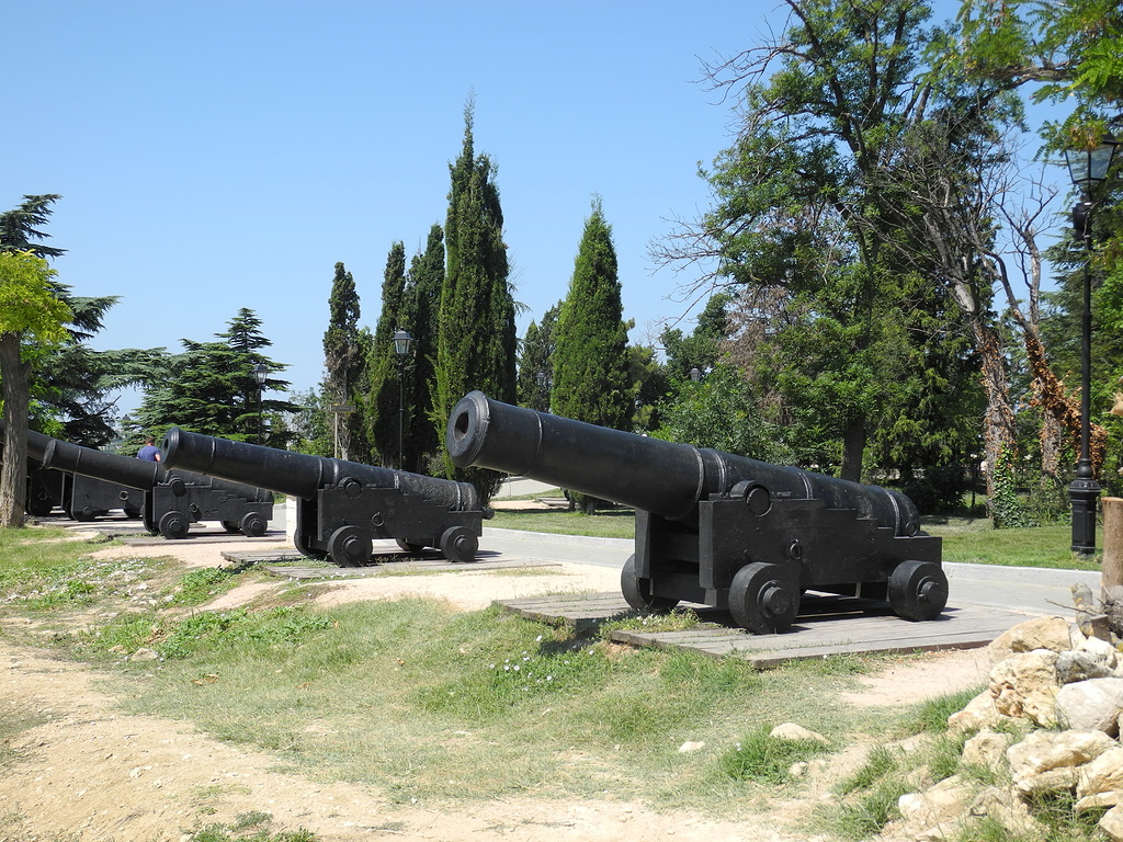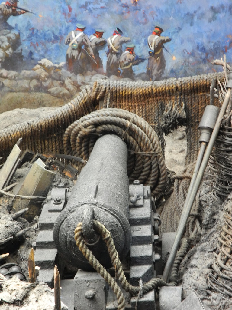 Малахов курган весьма большой по размеру, обойти его не так-то просто, и все же мне удалось осмотреть и оборонительные укрепления с пушками, направленными в сторону неприятеля, и с образцами других видов оружия, верно служившим нашим воинам, и с траншеями, выкопанными в разных местах.