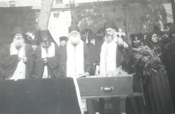 Фото: Момент отпевания. Справа-налево стоят с крестом архимандрит Димитрий (Биакай), архимандрит Аристоклий (Громыко), четвертый — архимандрит Модест (Шуст) 60-е годы 20 века. Из архива м. Серафимы