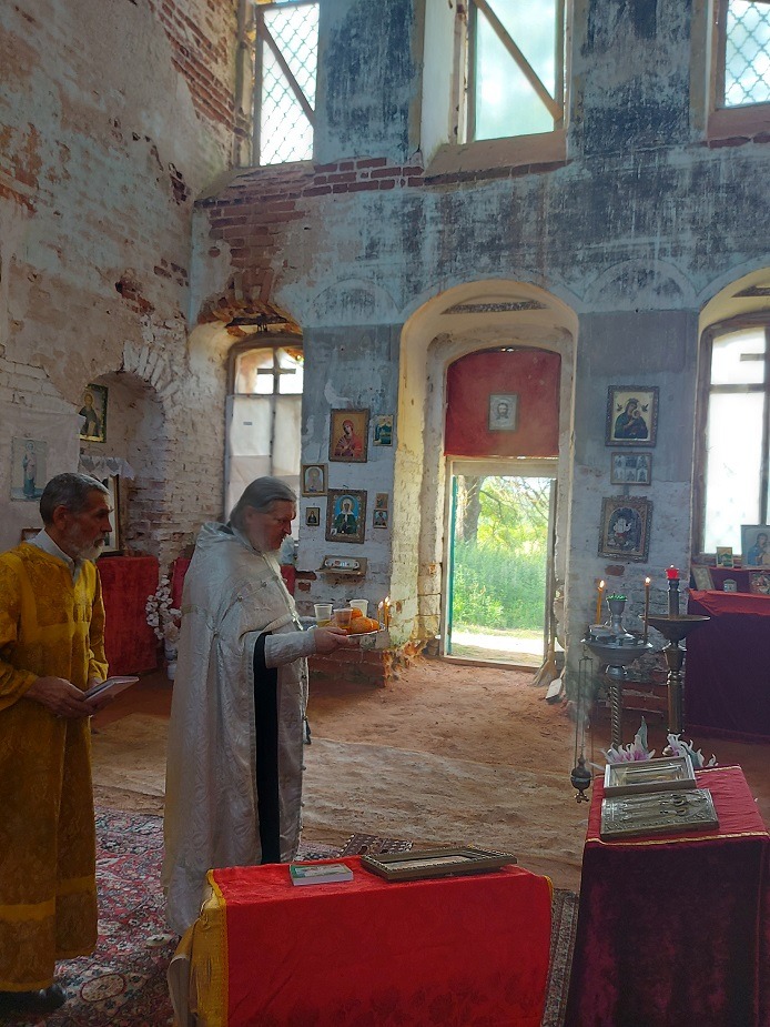 Казалось бы, можно прогуляться, посидеть на лавочке, но полноценного отдыха это не дает – его я ощутил только тогда, когда неподалеку от памятника павшим воинам, прочитав павечерницу, растянулся на лавке «аки бомж», положив часослов под голову. 25 минут – и свежесть, прилив сил. Служба проходила в непростых условиях, так как сильно лил дождь. Он заливал алтарь через несколько дыр в крыше. В самом храме было не лучше. Войдя внутрь, я увидел, что Царские врата были раскрыты. Оказалось, что это сделал один из прихожан, ссылаясь на сырость («Проветриваю», мол). Пришлось объяснять, что открывать и закрывать Царские врата может только священник, и что я сам буду это делать после Литургии. На службе мешали разговоры – а ведь сколько раз объяснял, что после того, как переступили порог храма, рот надо держать на замке. Женщина на крылосе подзывает своего мужа и что-то ему объясняет. Говорю ей, что это можно было бы сделать после службы, а она в ответ: «А вдруг я забуду». Глуховатый пономарь прямо в храме объясняет глуховатому прихожанину, как звонить на «Честнейшую». Их разговор слышен во всем храме, а ведь можно было выйти из храма и за дверью все объяснить. Во время службы заходит в храм мужчина средних лет, неуверенно крестится, причем, справа налево. Оказалось, что это сотрудник подрядной организации, которая планирует заниматься реставрацией храма. Стал все тщательно фотографировать. Помощники стали его расспрашивать: «Будет ли храм реставрироваться – ведь это памятник архитектуры конца XVIII века?» Он: «Для того, чтобы провести реставрацию, нужен проект». Помощник: «Пока его будут делать - храм окончательно рухнет. Нужно финансирование». Он: «Есть контролирующая организация по охране памятников. Например, если вы займетесь оконными проемами, то их задача – следить за соответствием того, что вы будете делать, оригиналу. Для этого мы занимаемся фотофиксацией» и т. д., и т. п. Интересный состоялся диалог – по сути, он ни о чем. Скорее всего, все будет оставаться по-прежнему, храм будет разрушаться.