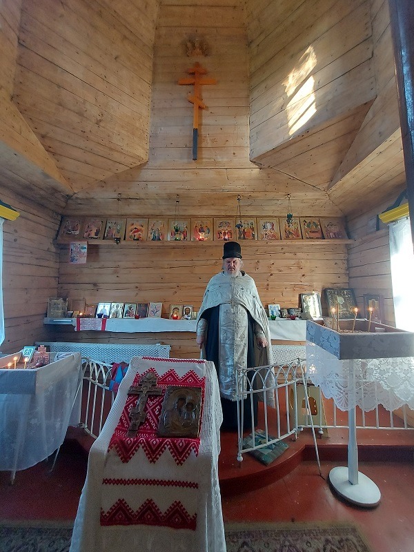 Служить Литургию – большой труд. Многочасовая служба накануне, затем Правило. Ранний подъем. Час-полтора по бездорожью до храма. Литургия по-старому чину совершается в течение не менее 3 с половиной часов (вместе с полунощницей и 9-м часом). Исповедь, беседа, ответы на вопросы. Большое напряжение, так как все нужно держать в руках, чтобы было единое целое. Потребление Святых Даров. После службы в Скорбященском храме с. Залазано - сытный обед у старосты (особенно понравились блины с рыбой). Помощники не доглядели – не дали деревенского молока, хотя и квас тоже был хорош.