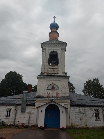 В селе поселяли тех, кого выселяли за 101-й километр. О. Сергий рассказал про поразительный случай, когда неподалеку в с. Дмитровском в 30-е годы разрушали церковь – тогда под рухнувшими приделами погибло 10 человек. Батюшка заканчивал мединститут в Твери. Духовного образования у него – 2 курса Свято-Тихоновского Университета (он был вынужден оставить учебу, чтобы ухаживать за престарелой матерью). Выехав из села, мы были приятно удивлены большими полями, на которых растет картофель, пшеница, овес, гречиха.