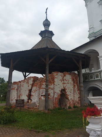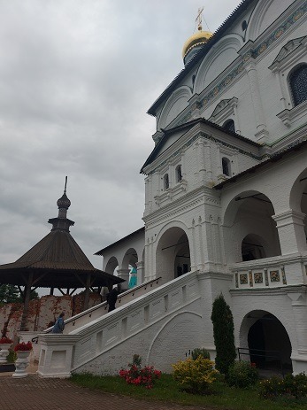Как обычно, помолились у мощей прп. Иосифа в Иосифо-Волоцком монастыре. Зашли в Надвратный храм обители, посвященный апостолам Петру и Павлу. Сейчас здесь ведутся реставрационные работы. Своей расцветкой он напомнил наш родной храм.