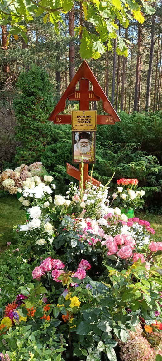 Отец Александр отошёл ко Господу 25 сентября 2022 года и покоится за алтарём церкви Всех Русских Святых в поселке Сосново.
