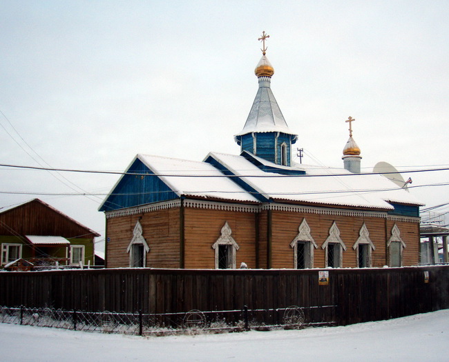 Как верующий православный человек, я поспешил в ближайшее воскресение в этот Чудо-Свято-Никольский храм. Храм деревянный, очень красивый, один из самых первых православных деревянных храмов в нынешней Якутии. Одна из древних жемчужин Российской Православной Арктической Якутии! Чего только не испытал этот Чудо-храм… В годы советской власти храм, конечно, не действовал, и выполнял разные функции от склада до больницы. Помню мне рассказывали, что в храме даже было родильное отделение, и роженицам являлся сам Святитель Николай, чтобы облегчить их страдания.