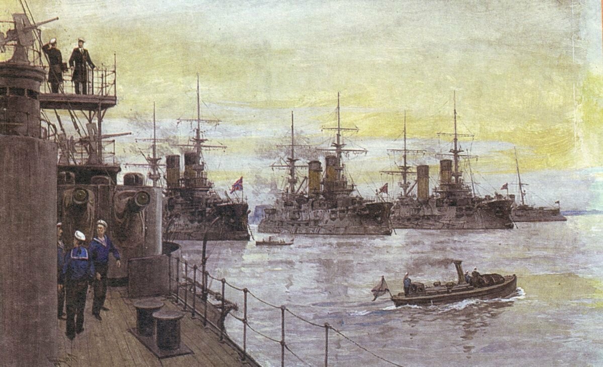 Поздней осенью 1904 года начала свой крестный путь к Цусиме 2-я эскадра флота Тихого океана. Весь путь длиной в половину земного экватора ей пришлось проделать без баз и станций. Так называемые союзники французы и те гнали и травили эскадру как могли. Исключением была известная стоянка эскадра в германской африканской колонии Ангра-Пекена 28 ноября – 4 декабря 2004 года, где немецкий майор-губернатор пил шампанское в кают-кампании «Князя Суворова» за победу России и погибель Англии, − главного врага наших стран[5].