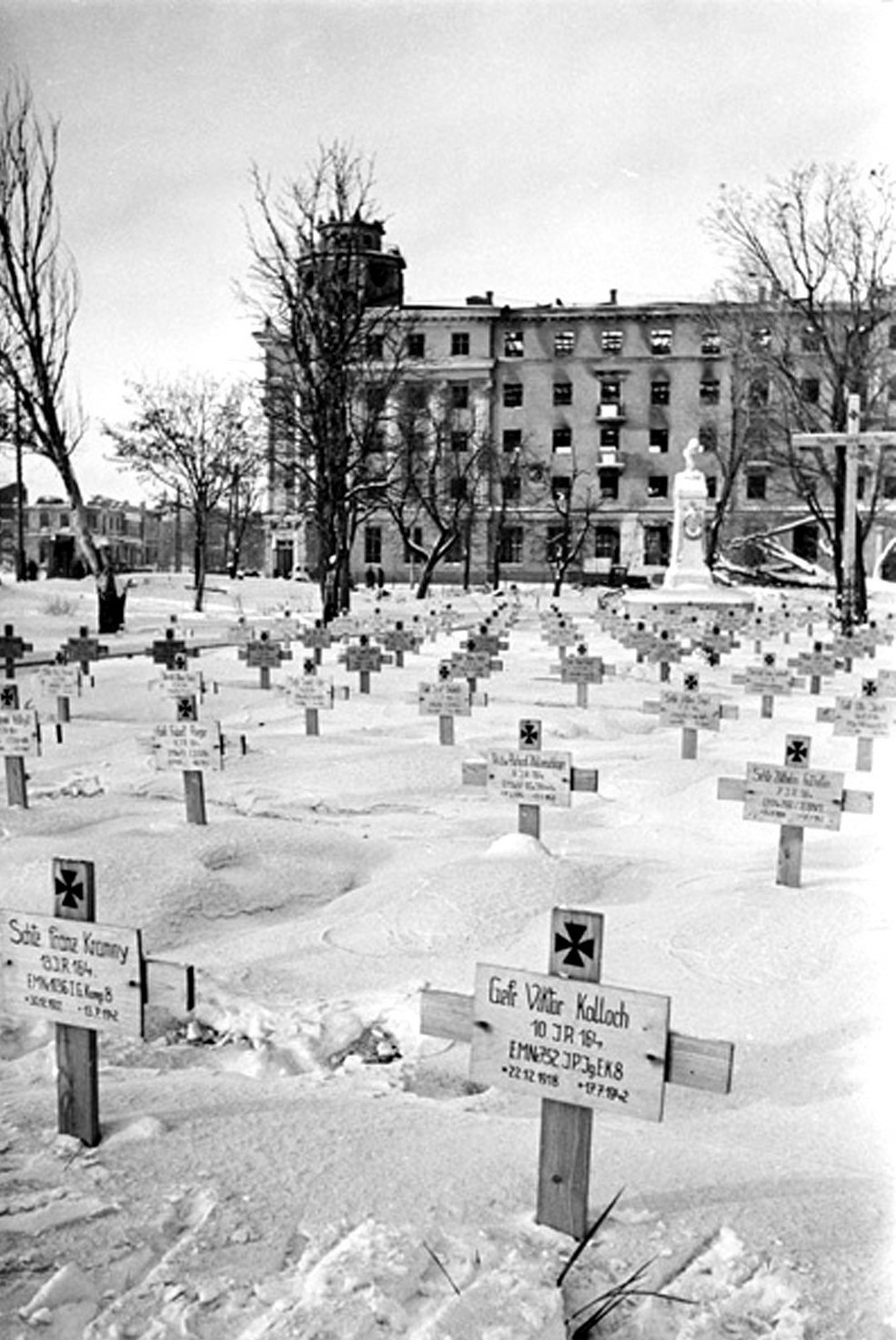Воронеж, зима 1943 г. На заднем плане гостиница "Воронеж", на переднем плане - импровизированная гостиница "Интурист"