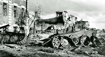 Город был полностью уничтожен, разбомблен, сожжен, взорван, заминирован. Ни одного живого жителя не встретилось на пути советских солдат в Воронеже. Лишь на виселицах качались заиндевевшие, почерневшие от времени трупы жертв летних расправ над мирным населением, да запорошенные снегом, так и не убранные тела воинов, защитников города. Поэт Константин Гусев писал в поэме «Город Дружбы»: