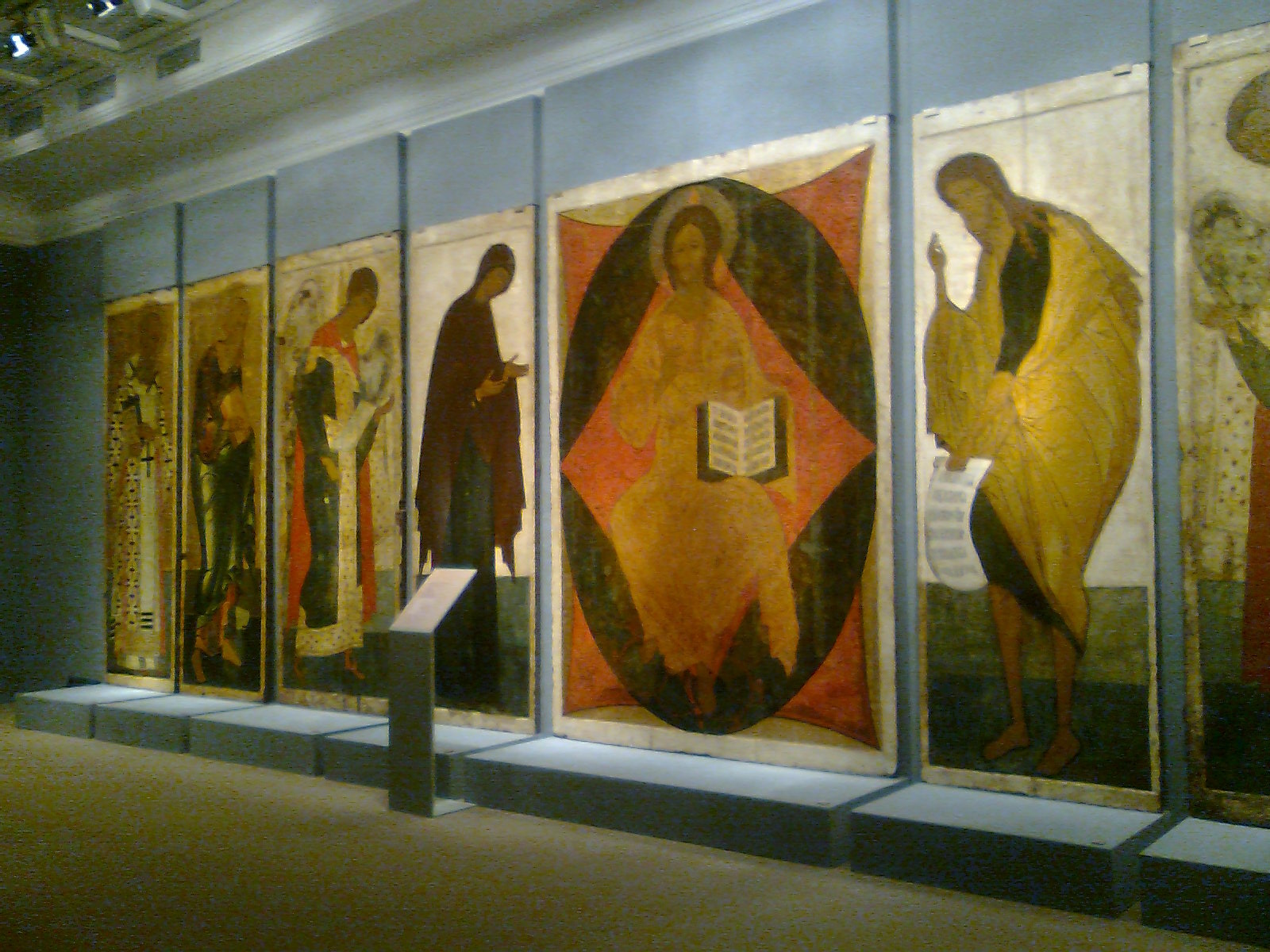 Иконостас имел четыре ряда икон: местный, деисусный, праздничный и пророческий. Над не сохранившимся местным рядом стоял огромный деисусный чин (высота 314 см). Из него сохранилось тринадцать икон. Есть недоказанные предположения, что их было больше.