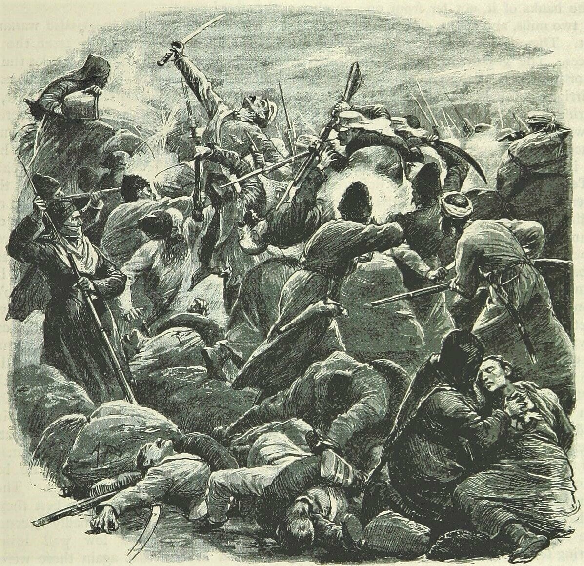 «…В 7 утра подполковник Гайдаров повел наступление на западную часть крепости, стараясь отвлечь на себя внимание ее защитников. Спустя несколько часов у крепости раздался оглушительный удар. Это взорвалась мина. В результате образовался 30-метровый пролом в стене. Туда бросилась колонна полковника Куропаткина. Другие подразделения тоже устремились в крепость, не давая опомниться ее защитникам.