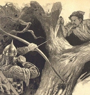 «Не повезло» воробью. Существует предание, что «когда Христа на кресте распинали, то он помогал – гвозди в клюве таскал, чтобы гвозди забивать в Христа» (У истоков мира. Русские этимологические сказки и легенды. М., 2017г. с. 157). Можно предположить, что воробей на плече чужого воина подчёркивает его антихристианскую направленность и об этом мы ещё скажем в дальнейшем.